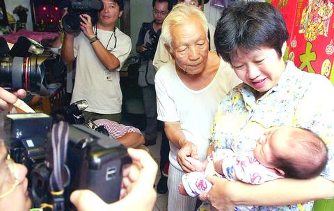 Huang Shi-chong (黃錫充) and his 35-year-old wife from China, Yang Hua-lin (楊華林), are the proud parents of a one-month old. "It's like a blessing from the heavens that I could have this son. That's why I named him Huang Tien-you (黃天佑)," Huang said. Tien You means "blessing from heaven."