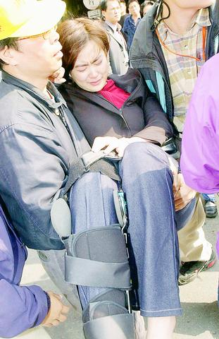 "They did it on purpose," a tearful Feng said while being admitted to a hospital for treatment. She said that her knee, which was recently operated on, was also hurt in the incident. Feng added that she would sue those who were responsible.