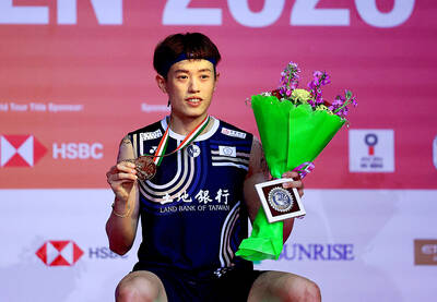 Taiwanese badminton player Lin Chun-yi yesterday won the men’s singles final of the India Open, surging past world No. 4 Jonatan Christie of Indonesia in straight games to win his first title since 2024. Following two disappointing runners-up finishes last year at the Orleans Masters and the China M