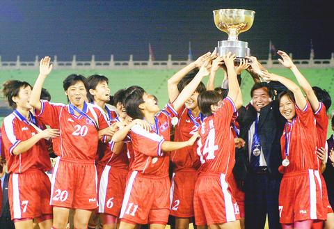 North Korea deservedly raised the AFC Women's Championship trophy in Taipei yesterday after edging out Japan 2-0 in an entertaining display of soccer.