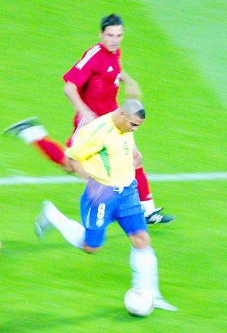 In the 27th minute two of the "3Rs," Rivaldo and Ronaldo -- Ronaldinho was suspended -- combined to give captain Cafu a chance to break the deadlock, shooting from 15m. But Recber got down smartly and the ball bounced over the bar.