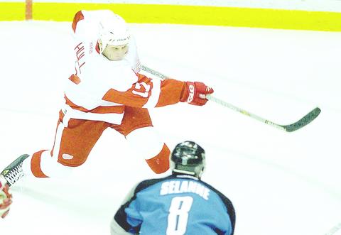 Hull's big goal was a one-time wrist shot from the bottom of the left circle that slipped through Nabokov's pads. Pavel Datsyuk set up Hull for the goal with a cross-ice pass.