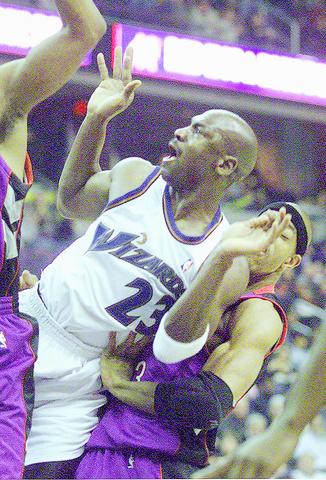 Voshon Lenard scored all 14 of his points in the final 12 minutes on Tuesday, and Vince Carter had 24 as the Toronto Raptors beat the Wizards 89-86 in a game that saw Washington also lose Michael Jordan to back spasms