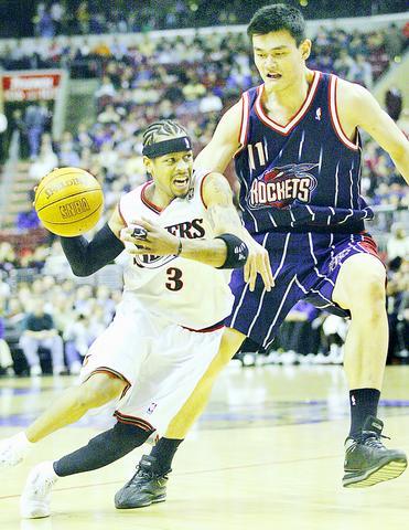 Yao Ming had 20 points and 13 rebounds, and the Houston Rockets capitalized on an injury to Keith Van Horn and a poor game by Allen Iverson as the Rockets muscled out the 76ers by 88 to 79 in Philidelphia.