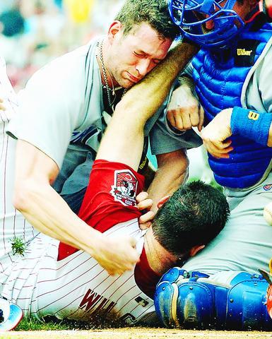 Wilson and Kyle Farnsworth went after each other in the bottom of the seventh, after the hard-throwing Cubs reliever threw him an inside fastball as he tried to bunt. Wilson whirled and yelled at the mound, and the two pitchers charged each other.