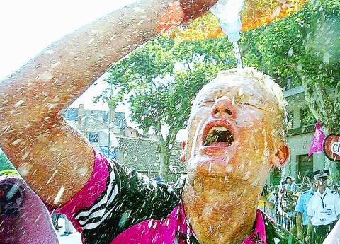 Armstrong bumped across the sun-baked grass to the bottom of the field, cutting off a hairpin bend. Then, he hopped off his bike to carry it back onto the road, climbed back into the saddle and sped off in pursuit of riders who'd got ahead of him on the bend.