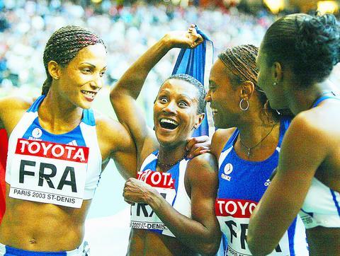 France capped a great day by winning the women's 4x100m relay at the World Championships Saturday, beating a US team whose anchor Kelli White pulled out hours before because of a doping investigation.