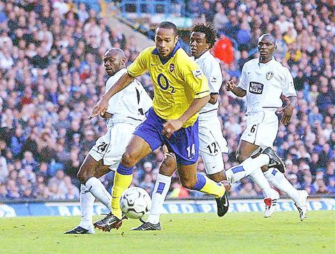 Thierry Henry scored twice as Arsenal maintained its lead atop the Premier League with a 4-1 win over Leeds, while rivals Chelsea and Manchester United also won Saturday.
