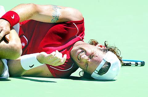 The 27-year-old Spaniard was down a break at 4-3 when he fell to the court. Moya played four more points after having his ankle and foot heavily taped, and was trailing 40-15 on Hewitt's serve when he pulled out.