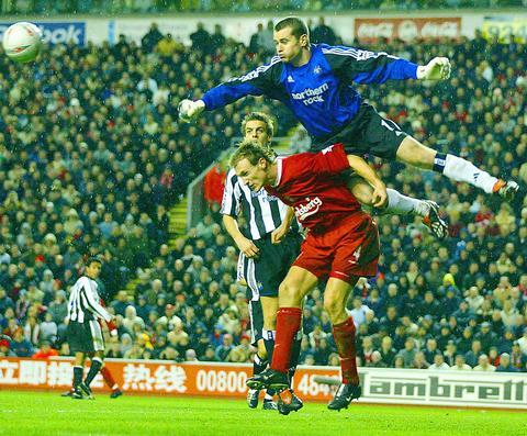 Two minutes later Newcastle equalized, with Laurent Robert scoring from a 30m free kick that curved past Liverpool goalkeeper Jerzy Dudek.