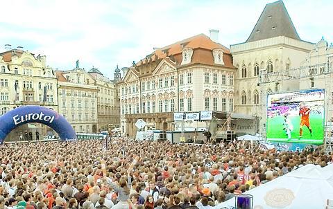 "Kdo neskace neni Cech, hop hop hop" [If you don't jump, you're not Czech] was the supporter's song, and how they danced to it. Players grabbed Czech flags and stood for several minutes as the chanting continued.