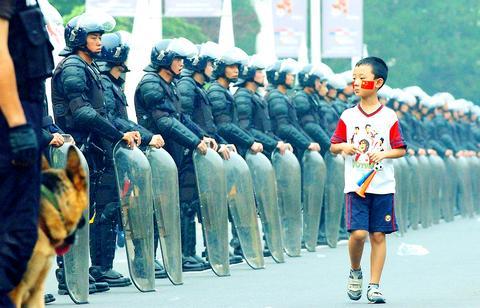Sincef Japanese players and fans at previous matches were harassed, thousands of police -- including riot troops in black body armor and shotgun-toting special tactical units -- stood guard outside Beijing's Workers' Stadium.