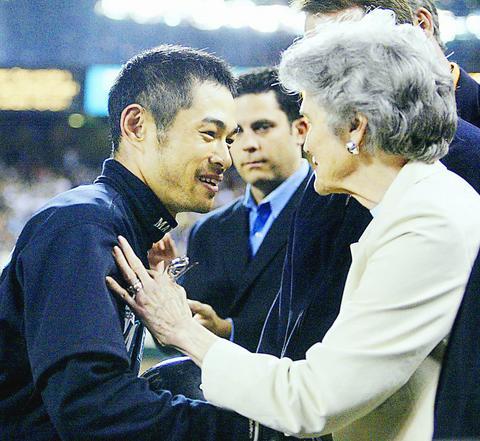 With fans still cheering, Suzuki ran to the first-base seats and shook hands with Sisler's 81-year-old daughter, Frances Sisler Drochelman, and other members of the Hall of Famer's family.