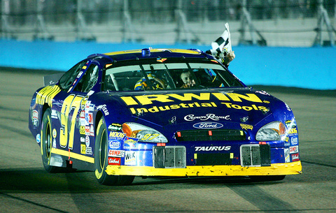 Waltrip's No. 15 Chevy bumped the outside wall three times during the final laps trying to find room to pass, but Waltrip was unable to slip ahead of Busch's No. 97 Ford. The third scrap on the second-to-last lap ensured the victory for Busch, last season's Nextel Cup series winner.