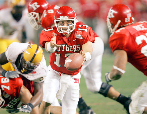 For Rutgers, Jeremy Ito kicked four field goals and fullback Brian Leonard had two touchdowns, one on a 31-yard pass play, the other on a 3-yard run. Ryan Hart, the Scarlet Knights' quarterback, threw three touchdown passes.