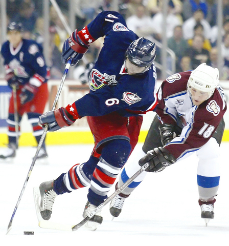At Columbus, Ohio, Marek Svatos scored twice in a 3-minute span of the third period to lead Colorado over Columbus.