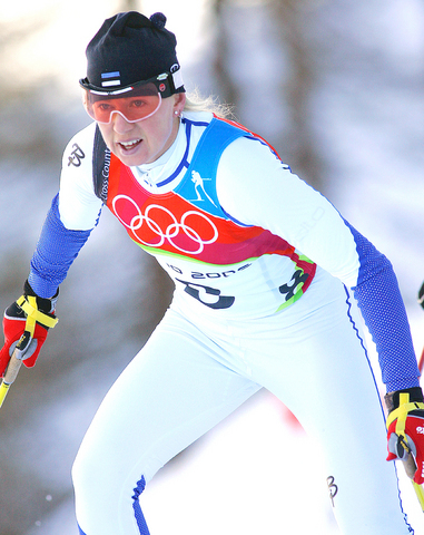 Kristina Smigun of Estonia won gold in the women's 15km pursuit after World Cup leader and favorite Marit Bjorgen of Norway dropped out with a stomach problem.