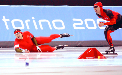 Around them, there were spectacular crashes everywhere on Monday at the Turin Winter Games.
