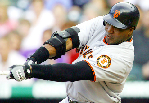 The slugger sliced a belt-high fastball from right-hander Aaron Cook (1-3) to left field, moving within five home runs of Babe Ruth for the most by a left-handed hitter. It came in Bonds' 31st at-bat and 13th game this year.