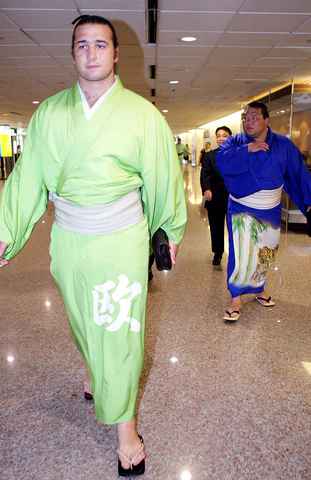 The sumo wrestlers will stage exhibition matches tomorrow and on Sunday in the Taipei Arena.