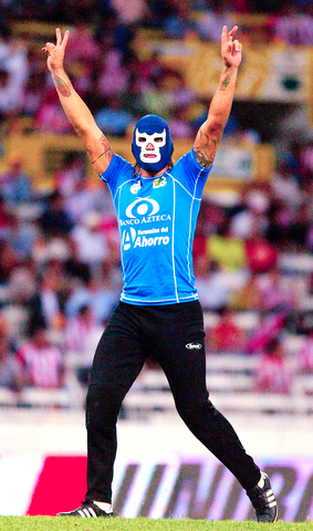 Players like Chiapas Jaguars' goalkeeper Omar Ortiz had a habit of celebrating goals by donning a mask similar to one worn by the pro wrestler known as "Blue Demon," and Gabriel Pereira of Mexico City's Cruz Azul squad did the same with a mask like that worn by "Mistico," another pro wrestler.