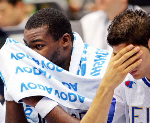 The Greeks started the game continually passing down to Lazaros Papadopolous in the blocks, trying to take advantage of Reyes. But the Spaniard held his own, with doubling defensive help from Garbajosa. And Reyes scored three of Spain's first four baskets.