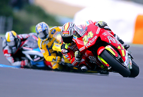 Earlier, Honda's Andrea Dovizioso of Italy won the 26-lap 250cc race in 44:30.727 to cut championship leader Jorge Lorenzo's overall lead from 27 to 13. The Spaniard finished fifth. KTM rider Hiroshi Aoyama couldn't make it two wins in a row, finishing in 44:30.742 for second, while Alex De Angelis of Italy was third.