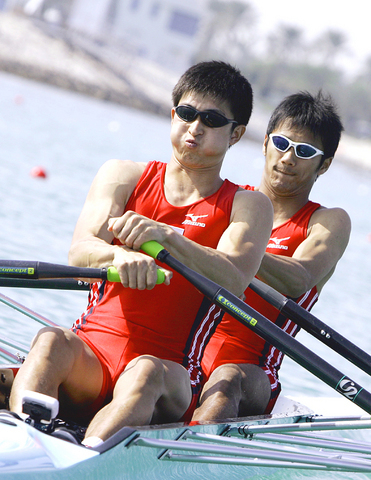 Hideki Omoto and Takahiro Suda of Japan sped down the seaside West Bay Lagoon course in three minutes, 19.29 seconds over the 1,000 meters, just ahead of the 3:19.92 posted by silver medal winners Thailand. India was third for the bronze.