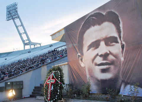 The crowd, numbering in excess of 10,000, stood in silence, many of them holding candles in the dimming early-evening light, and a lone bell tolled as the coffin was brought onto the pitch that "Little Brother," as he was affectionately know in Hungary, so often graced as a player.