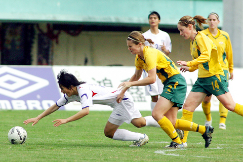 Taiwan gave the crowd hope in the 35th minute following a break down the left, when Tsai Pei-wen (蔡佩紋) found herself free with the ball on the right of the penalty area and coolly converted past the helpless Melissa Barbieri in the Aussie goal.