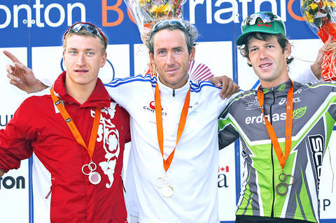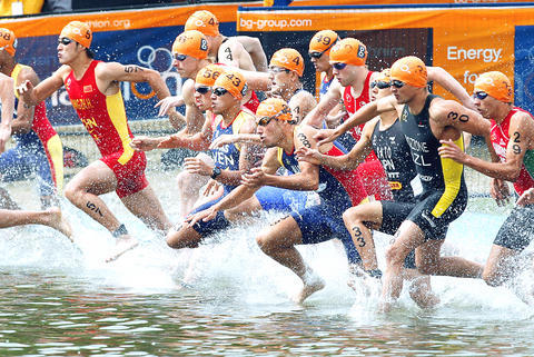 New Zealand's Docherty bided his time through the swim and bike legs then ran strongly to move to the front and finish in 1 hour, 45 minutes, 54 seconds -- 20 seconds ahead of Alexander Brukhankov of Russia.