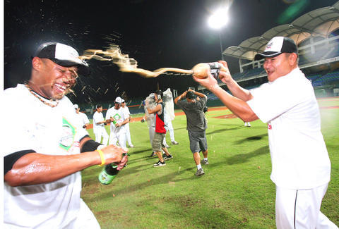 The Macoto Cobras celebrated their first-half title with a thrilling 5-4 win over the Chinatrust Whales in Sinjhuang on Monday as makeup week winds down in the Chinese Professional Baseball League.
