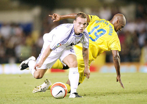 Wesley Sneijder may not sell as many Real Madrid shirts as David Beckham but the Dutch international, who inherited the England star's number 23 shirt, certainly has his dead-ball skills, scoring twice as the champions crushed Villareal 5-0 on Sunday.