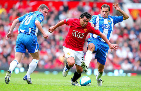 United dominated the match but did not make a breakthrough until the 54th minute when Tevez opened the scoring with a superbly taken effort.