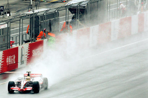 Hamilton started from pole knowing he only needed to finish ahead of Alonso to become the first rookie to win the drivers' title, but rain began to fall just as the drivers began the warm-up formation lap.