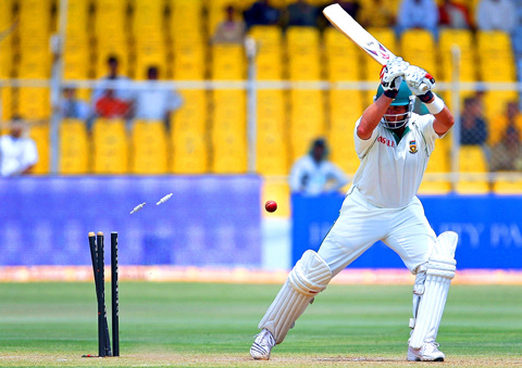 When Kallis inside-edged paceman Shanthakumaran Sreesanth’s delivery on to his stumps in the afternoon session, South Africa were a mammoth 297 runs ahead with five wickets in hand.