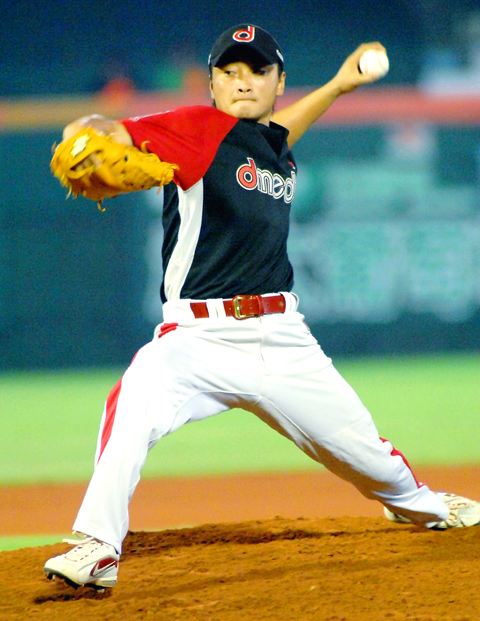 Chang Jien-ming’s two-run double led a five-run seventh that broke a 3-3 tie. Tsai Ming-jin and Lee Chih-wei combined for three innings of one-run relief to preserve the first win in Taiwan for starter Jeremy Cummings.