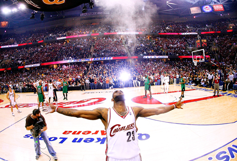 That's when James put his signature on the game. The muscular 6-foot-8, 250-pound small forward drove past Pierce and James Posey before posterizing Garnett with a thunderous right-handed slam with 1:45 left, sending the rabid fans into a frenzy at sold out Quicken Loans Arena.