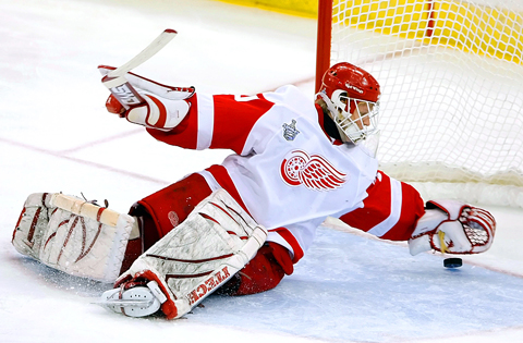 From the left side of the Red Wings’ net, Stuart attempted a pass to Henrik Zetterberg, who had the puck ricochet off his skate. Crosby shoveled it between the pads of goalie Chris Osgood from the front of the net with 2 minutes, 35 seconds left in the first for a 1-0 lead.