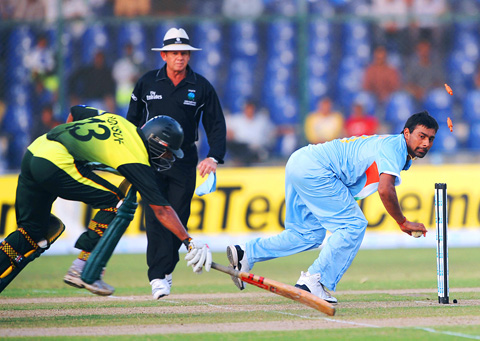 Butt and Pakistan were slow off the mark, managing just 58 runs off the first 15 overs. Once Butt went, caught off leg-spinner Piyush Chawla in the 22nd over, Younus and Malik upped the tempo.
