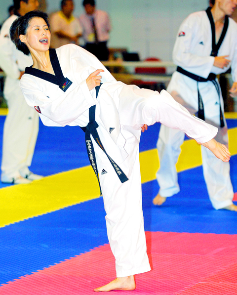 Taiwan’s first gold medalist Chu Mu-yen (朱木炎) is confident he will retain his taekwondo title in Beijing, while girlfriend Yang Shu-chun (楊淑君) is hoping for success in the women’s competition.