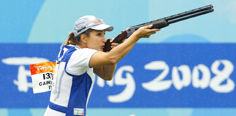 Later yesterday, Italy’s Chiara Cainero won a three-way sudden death shoot-out in pouring rain to take the gold medal in skeet shooting.