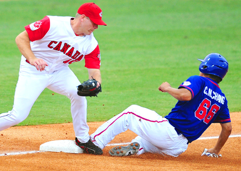 Canada came back to tie the game, scoring a run on Chiang Chih-hsien’s throwing error in the bottom half of the second, adding another run on a fielder’s choice, scoring centerfielder Adam Stern in the bottom of the fourth, and then tying the game on Stubby Clapp’s solo shot in the bottom of the 7th inning off reliever Pan Hui-Lung.
