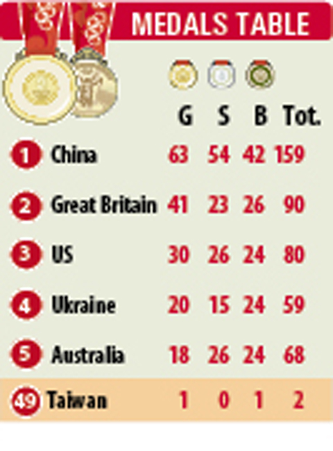 China had 63 golds and 159 medals in total on yesterday evening — matching its tally of 63 golds at the Athens Games and 22 golds clear of second-placed Britain.