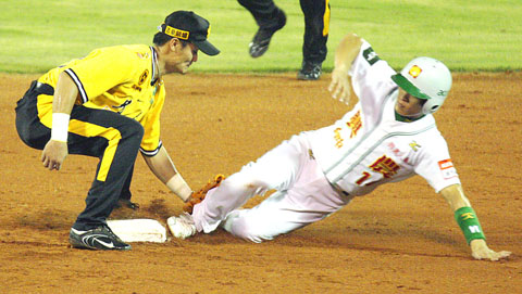 Also starring for the Elephants were sluggers Chen Chih-yuan and Chen Rei-chen who collected a pair of base hits each to help their club win its third in a row and sixth in the past seven games.