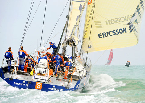 Ericsson 3 and Ericsson 4 were tied in the lead after they crossed the Strait of Gibraltar on their way down the Atlantic to Cape Town in South Africa, where the first leg of the race will end.