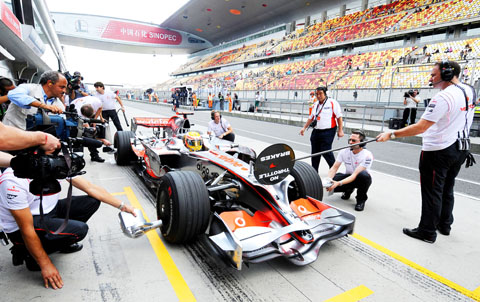 McLaren’s Lewis Hamilton set the fastest time in both practice sessions yesterday for the Chinese Grand Prix, demonstrating pace that could clinch him the Formula One title tomorrow.