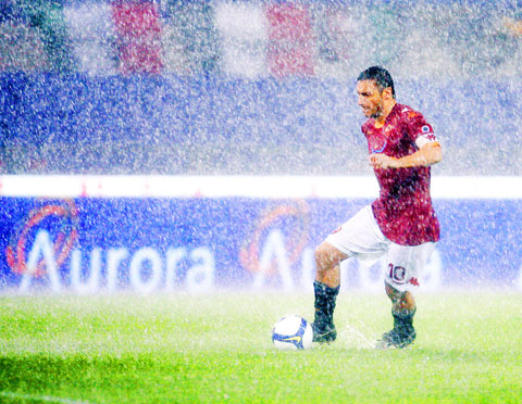 The champions came out firing and Brazilian winger Mancini hit the bar with a rocket from a tight angle on just five minutes after a splendid disguised pass from Zlatan Ibrahimovic. Inter came within a whisker of scoring again on 27 minutes through the same combination, but this time it was Mancini’s delicate chip forward that released Ibrahimovic, who outpaced and out-muscled Alessandro Gamberini before just missing the far post with a ripping volley.