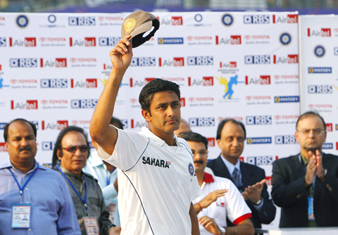 Legspinner Kumble, who suffered a serious injury to his left hand while fielding on Friday, announced his retirement with his side poised to record a series win over the world’s top-ranked Test team.