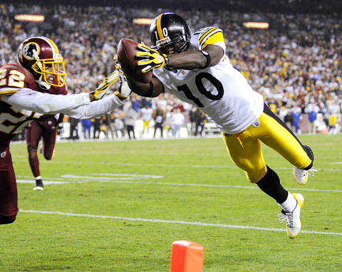Leftwich’s 50-yard completion to Nate Washington set up a 1-yard TD run by Willie Parker, who was back from a four-week layoff with a knee injury. He also had a 5-yard scoring pass to Santonio Holmes. Roethlisberger celebrated that touchdown on the sideline by high-fiving his teammates — with his left hand.